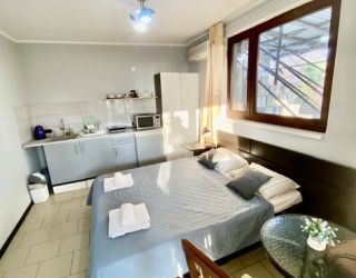 Гостевой дом «Студио Отельчик Вардане» расположен в тихом поселке Вардане, всего в 7 минутах ходьбы от моря. До малолюдного пляжа Шексна — 400 метров, где можно отдыхать на смешанном галечно-песчаном берегу без толп туристов. Номера-студии оформлены просто и аккуратно, в каждом есть своя кухня: это удобно для тех, кто любит готовить самостоятельно. Wi-Fi доступен бесплатно и в комнатах, и на территории.