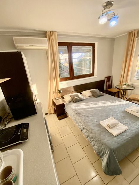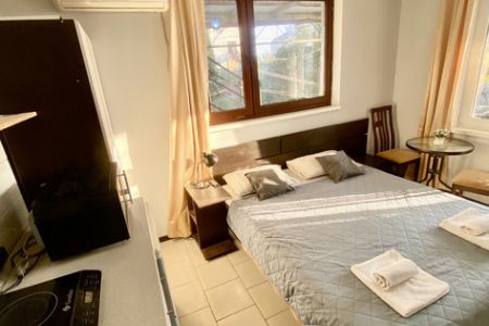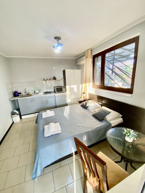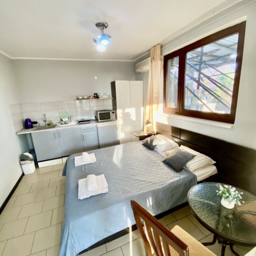 Здесь нет шумных мероприятий или ресторана, зато есть всё для спокойного отдыха: тишина, близость к морю и возможность жить в своем ритме. Подойдет тем, кто ищет бюджетный вариант с базовым комфортом и хочет проводить дни на пляже, а вечера — в уютном номере.