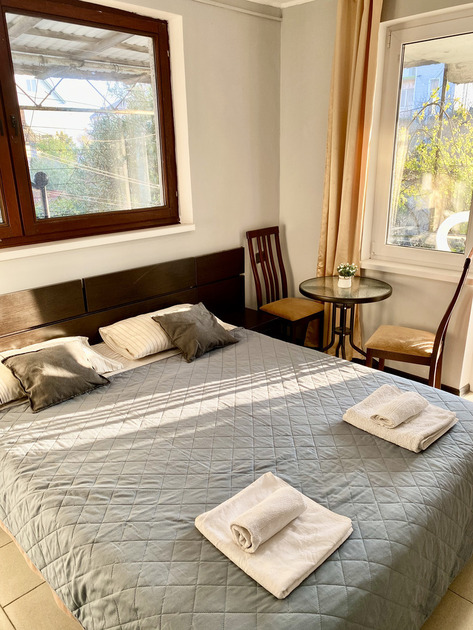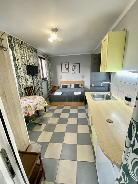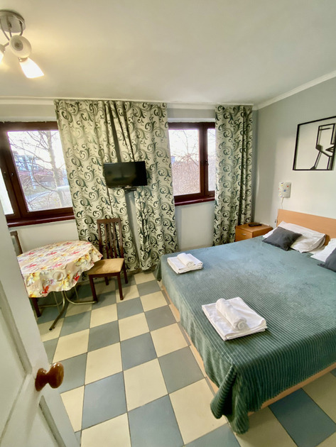 | Студия 2-местная №6 | 14 кв.м. | 2 чел. | Кухня, Мебель (вешалка, зеркало, кровать двуспальная, прикроватные тумбочки, стол, столик журнальный... |